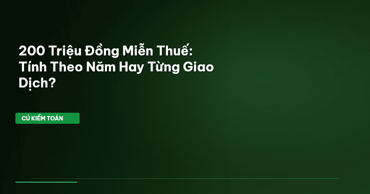 ⏱️ 9 phút đọc · 1677 từ Giới Thiệu: 200 Triệu Đồng – Ngưỡng Miễn Thuế Hay Cạm Bẫy? "200 triệu đồng miễn thuế" – Cụm từ này vang lên thường xuyên, khiến không ít cá nhân kinh doanh, hộ kinh doanh phải đau đầu. Liệu đây là ngưỡng áp dụng cho từng giao dịch riêng lẻ? Hay là tổng doanh thu trong một tháng? Một năm? Sự nhầm lẫn này có thể dẫn đến những quyết định sai lầm, gây thiệt hại tài chính hoặc thậm chí là vi phạm quy định về thuế. Trong bối cảnh kinh tế hiện tại, mọi chi phí đều cần được quản …
