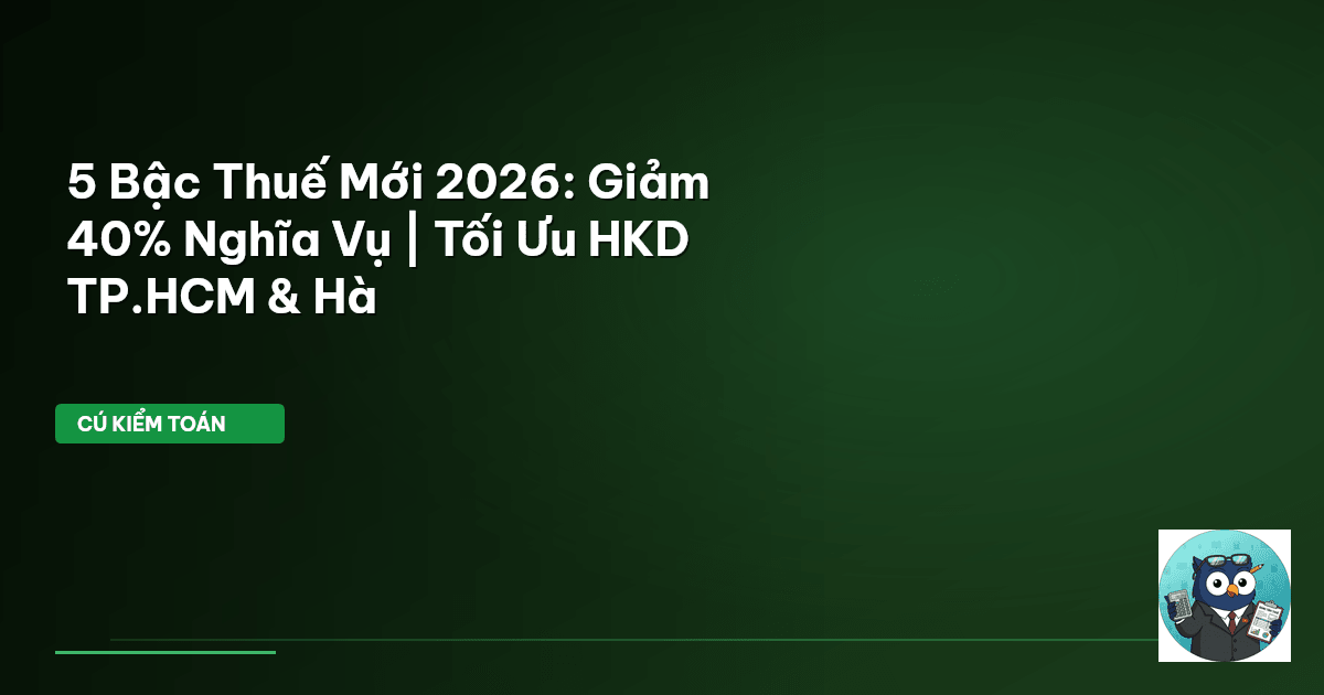 | 📌 Chủ đề | 5 Bậc Thuế Mới 2026: Giảm 40% Nghĩa Vụ | Tối Ưu HKD TP.HCM & Hà |