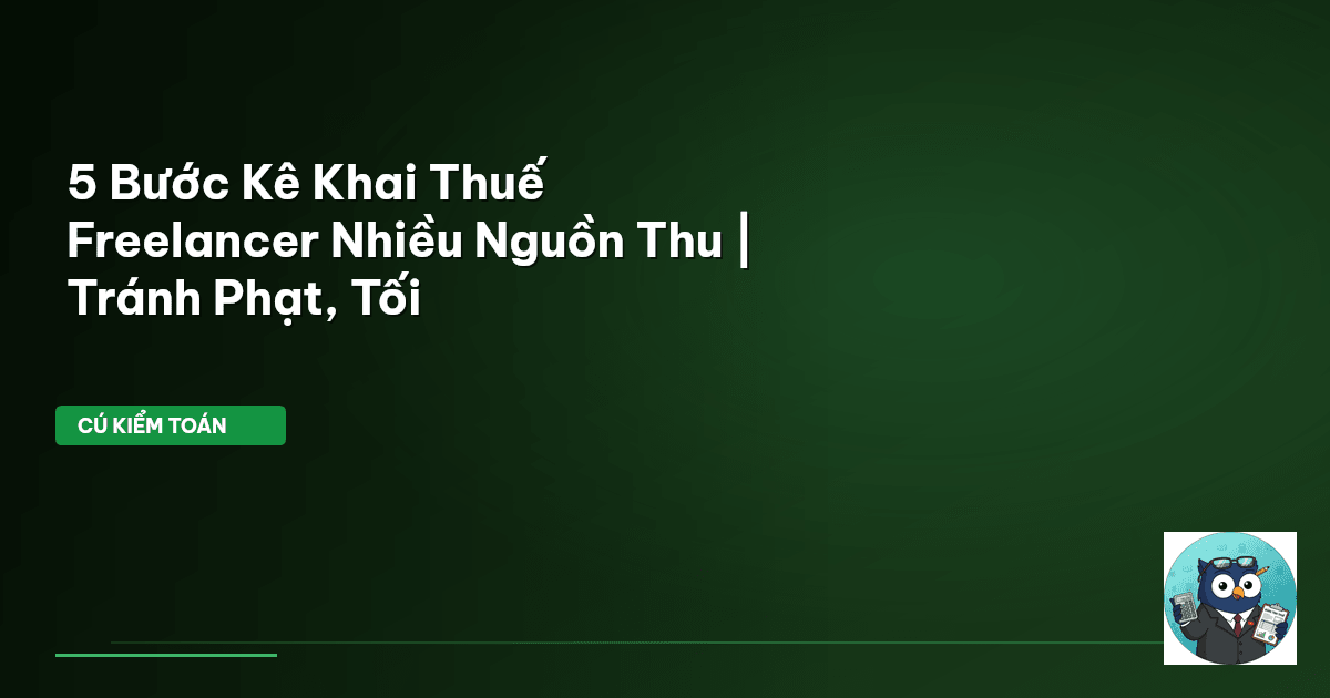 ⏱️ 15 phút đọc · 2896 từ Giới Thiệu: Freelancer Nhiều Nguồn Thu — Đau Đầu Kê Khai Thuế? Chào mừng bạn đến với Cú Kiểm Toán! Nếu bạn là một freelancer, hay 'người làm việc tự do', việc quản lý thu nhập đã phức tạp, thì kê khai thuế với nhiều nguồn thu còn là một mê cung thực sự. Khác với những người làm công ăn lương có một đầu mối trả thu nhập, freelancer thường có vô vàn khách hàng, vô vàn hợp đồng, và đôi khi là cả doanh thu từ bán hàng online lẫn dịch vụ tư vấn. Vậy làm sao để 'soi' kỹ từng k…