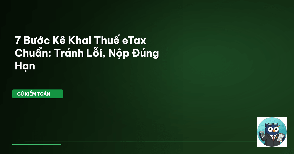Tuy nhiên, không ít kế toán, chủ doanh nghiệp hay cá nhân tự kê khai vẫn còn e ngại. Họ lo lắng về quy trình phức tạp, các lỗi phát sinh hay việc không nắm rõ các điều luật liên quan. Đừng lo lắng. Cú Kiểm Toán ở đây để soi kỹ từng con số, từng bước đi, giúp bạn kê khai thuế qua eTax một cách chính xác và hiệu quả nhất. Bài viết này sẽ vạch ra 7 bước chuẩn, giúp bạn vững vàng trên con đường tuân thủ nghĩa vụ thuế, tránh mọi rủi ro không đáng có.