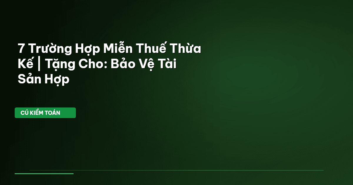⏱️ 11 phút đọc · 2124 từ Giới Thiệu: Đừng Để Thuế Làm Khó Kế Hoạch Tài Sản! Tài sản là câu chuyện lớn. Khi tài sản chuyển giao, dù là thừa kế hay tặng cho, câu hỏi đầu tiên thường là: "Có phải đóng thuế không? Đóng bao nhiêu?". Nhiều người vẫn lầm tưởng mọi tài sản có giá trị đều phải chịu thuế thu nhập cá nhân (TNCN). Sự thật không phải vậy. Luật pháp Việt Nam có những "lỗ hổng" hợp pháp – hay đúng hơn là những trường hợp được miễn thuế rõ ràng – mà nhiều người không nắm bắt. Cú Kiểm Toán soi k…