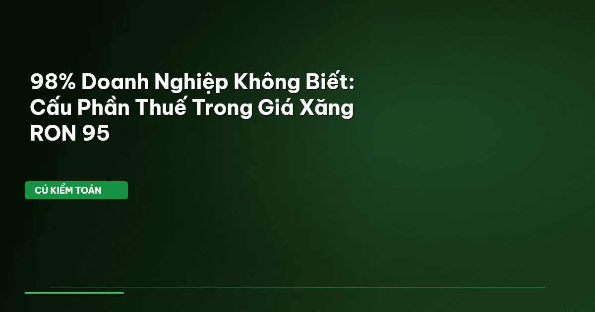 ⏱️ 13 phút đọc · 2408 từ Giới Thiệu: Bài Toán Năng Lượng Không Chỉ Là Con Số Cú Kiểm Toán nhận thấy một xu hướng nóng bỏng: Chi phí năng lượng, đặc biệt là giá xăng, đang là gánh nặng không hề nhỏ cho nhiều doanh nghiệp Việt. Hầu hết chỉ nhìn vào con số cuối cùng tại cây xăng mà bỏ qua các thành phần ẩn chứa bên trong, nhất là cấu phần thuế. Theo dữ liệu từ hệ thống Cú Thông Thái, cập nhật ngày 28/04/2026, giá xăng RON 95 tại Việt Nam đang ở mức 22.880 VND/lít . Nhìn qua, con số này có vẻ "dễ th…