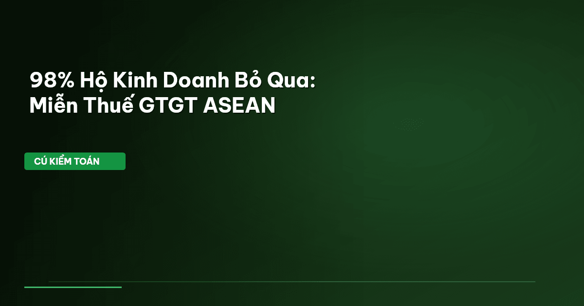 ⏱️ 13 phút đọc · 2530 từ Giới Thiệu: Miễn Thuế GTGT Hộ Kinh Doanh – Góc Nhìn Toàn Cầu Kinh doanh ngày càng hội nhập, việc "soi" chính sách thuế các nước bạn không còn là chuyện của mỗi cơ quan chức năng, mà là bí quyết để hộ kinh doanh Việt Nam vững vàng hơn. Hôm nay, Cú Kiểm Toán sẽ "mổ xẻ" chính sách miễn thuế Giá trị gia tăng (GTGT) cho hộ kinh doanh tại khu vực ASEAN. Đây không chỉ là thông tin tham khảo, mà còn là bài học thực tế về việc tối ưu chi phí, đặc biệt khi chi phí vận hành ở mỗi q…