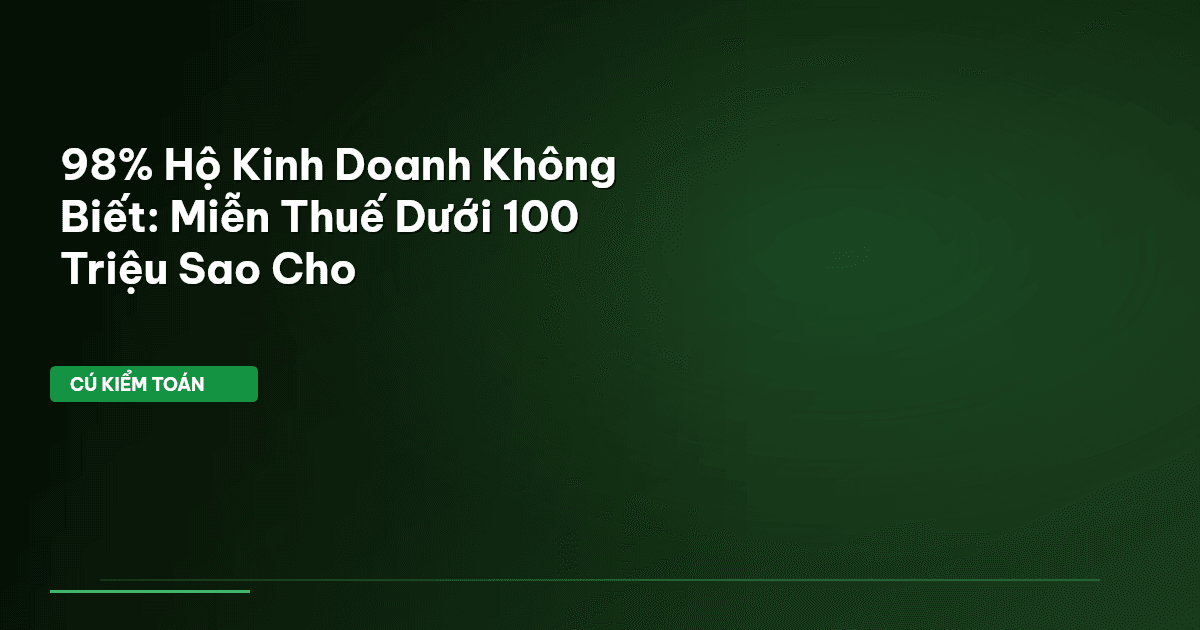 ⏱️ 13 phút đọc · 2417 từ Giới Thiệu: Doanh Thu Dưới 100 Triệu — Miễn Thuế Hay Có Điều Kiện? Nhiều hộ kinh doanh, cá nhân kinh doanh ở Việt Nam cứ nghĩ rằng, nếu doanh thu năm dưới 100 triệu đồng thì "mặc định" được miễn thuế. Cứ thế mà hoạt động, chẳng cần bận tâm gì đến cơ quan thuế. Sai lầm! Thực tế, quy định này không hề đơn giản như vậy. Cú Kiểm Toán hôm nay sẽ "soi kỹ từng con số" để chỉ ra những điều kiện, những ngóc ngách mà 98% hộ kinh doanh thường bỏ qua. Miễn thuế là một chính sách ưu …