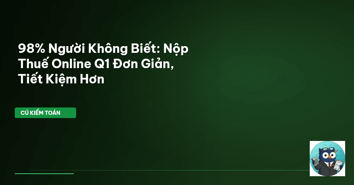 Bài viết này của Cú Kiểm Toán sẽ giúp bạn soi kỹ từng bước nộp thuế online Q1. Từ quy định đến các hình thức thanh toán, chúng tôi sẽ chỉ rõ con đường ngắn nhất để bạn hoàn thành nghĩa vụ thuế một cách chính xác, nhanh chóng và tiết kiệm chi phí. Đừng để những thủ tục rườm rà cản trở công việc kinh doanh của bạn.