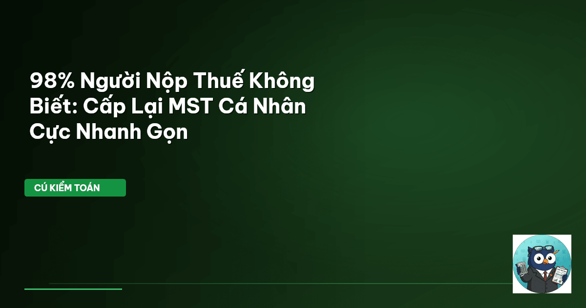 ⏱️ 12 phút đọc · 2276 từ Giới Thiệu: Mất Mã Số Thuế Cá Nhân — Nỗi Lo Cũ, Giải Pháp Mới Mất Mã Số Thuế cá nhân (MST)? Đừng lo. Cú Kiểm Toán biết nỗi sợ thủ tục hành chính. Nhưng đây là sự thật: Việc cấp lại MST giờ đây cực kỳ nhanh gọn. Trong bối cảnh kinh tế hiện đại, mỗi con số đều có trọng lượng riêng. Từ giá RON 95 ở Việt Nam là 23.540 VND/lít , so với 74.729 VND/lít ở Singapore vào tháng 4 năm 2026, cho đến con số MST cá nhân – tất cả đều cần sự chính xác. MST cá nhân không chỉ là dãy số. Nó…