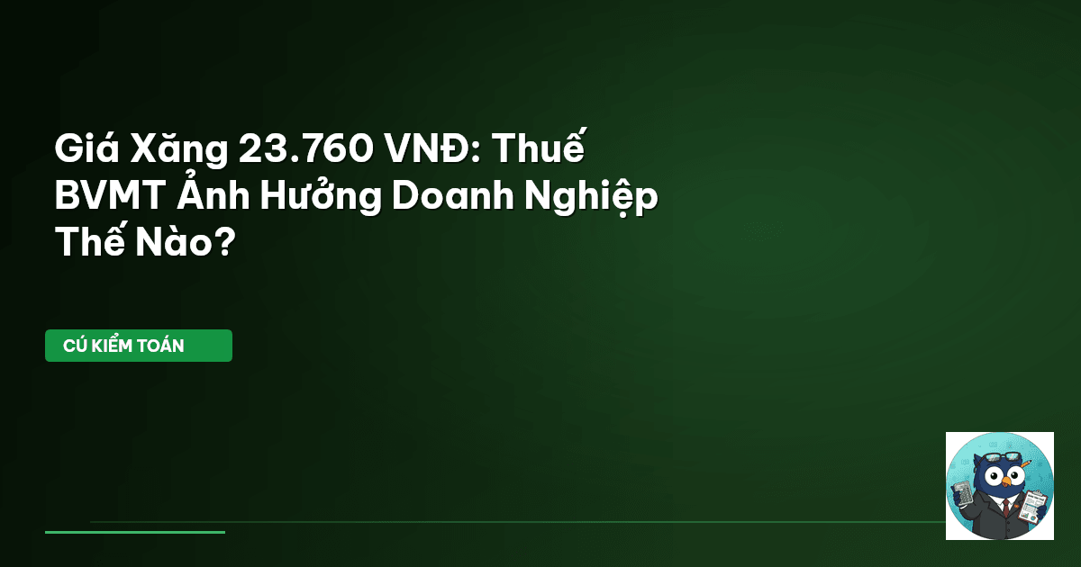 Cú Kiểm Toán nhận thấy, trong bối cảnh giá xăng RON 95 đang ở mức 23.760 VNĐ/lít (cập nhật ngày 15/04/2026), việc hiểu rõ các thành phần cấu thành giá, đặc biệt là Thuế Bảo Vệ Môi Trường (BVMT), không còn là chuyện của dân tài chính mà là kiến thức sống còn cho mọi chủ doanh nghiệp. Nắm bắt được cơ chế này, bạn mới có thể đưa ra các quyết định kinh doanh sáng suốt và tối ưu hóa chi phí.