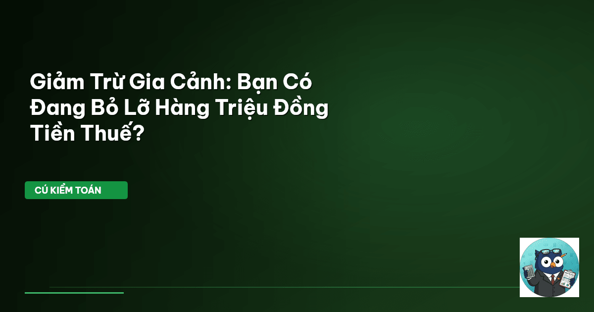 ⏱️ 9 phút đọc · 1747 từ Giới Thiệu: Đừng Để Tiền Thuế Chảy Qua Kẽ Tay! Cú Kiểm Toán biết. Hàng triệu người lao động Việt Nam mỗi tháng đều băn khoăn về con số trên phiếu lương. Liệu khoản thuế thu nhập cá nhân (TNCN) đã đóng có thật sự đúng? Đã tối ưu hết các quyền lợi chưa? Đặc biệt là khoản giảm trừ gia cảnh. Đây không chỉ là một điều khoản luật. Đây là con số trực tiếp tác động đến túi tiền bạn. Theo số liệu từ Tổng cục Thuế, hàng năm vẫn còn một tỷ lệ không nhỏ người nộp thuế chưa khai báo h…