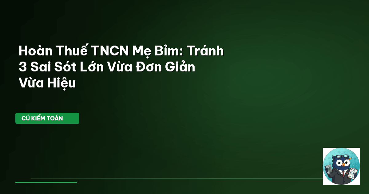 ⏱️ 12 phút đọc · 2343 từ Giới Thiệu: Đừng Để Tiền Hoàn Thuế Rơi Rớt Các mẹ bỉm, Cú Kiểm Toán biết quỹ thời gian của các bạn quý giá đến mức nào. Giữa tã bỉm, sữa, công việc, và trăm thứ không tên, việc đau đầu với thủ tục hành chính, đặc biệt là thuế, thường bị đẩy xuống cuối danh sách. Nhưng này, đừng vội bỏ qua! Tiền hoàn thuế thu nhập cá nhân (TNCN) có thể là một khoản đáng kể, giúp giảm bớt gánh nặng chi phí hàng ngày. Cú Kiểm Toán soi kỹ từng con số. Ngay cả giá xăng RON 95 tại Việt Nam, dù…