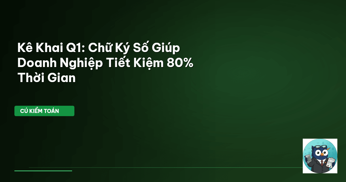 ⏱️ 10 phút đọc · 1966 từ Kê Khai Q1: Chữ Ký Số – Lối Thoát Cho Doanh Nghiệp Trong Mùa Hạn Chót Hạn chót kê khai thuế Quý 1 đang đến gần. Kế toán và chủ doanh nghiệp lại tất bật với núi giấy tờ, lo lắng về sai sót và áp lực thời gian. Thế nhưng, Cú Kiểm Toán nhìn thấy một con đường khác: chữ ký số . Đây không còn là tùy chọn, mà là công cụ bắt buộc để tuân thủ quy định và đồng thời, là chìa khóa để doanh nghiệp hoạt động hiệu quả hơn, đặc biệt trong bối cảnh kinh tế nhiều biến động. Theo Thông tư…