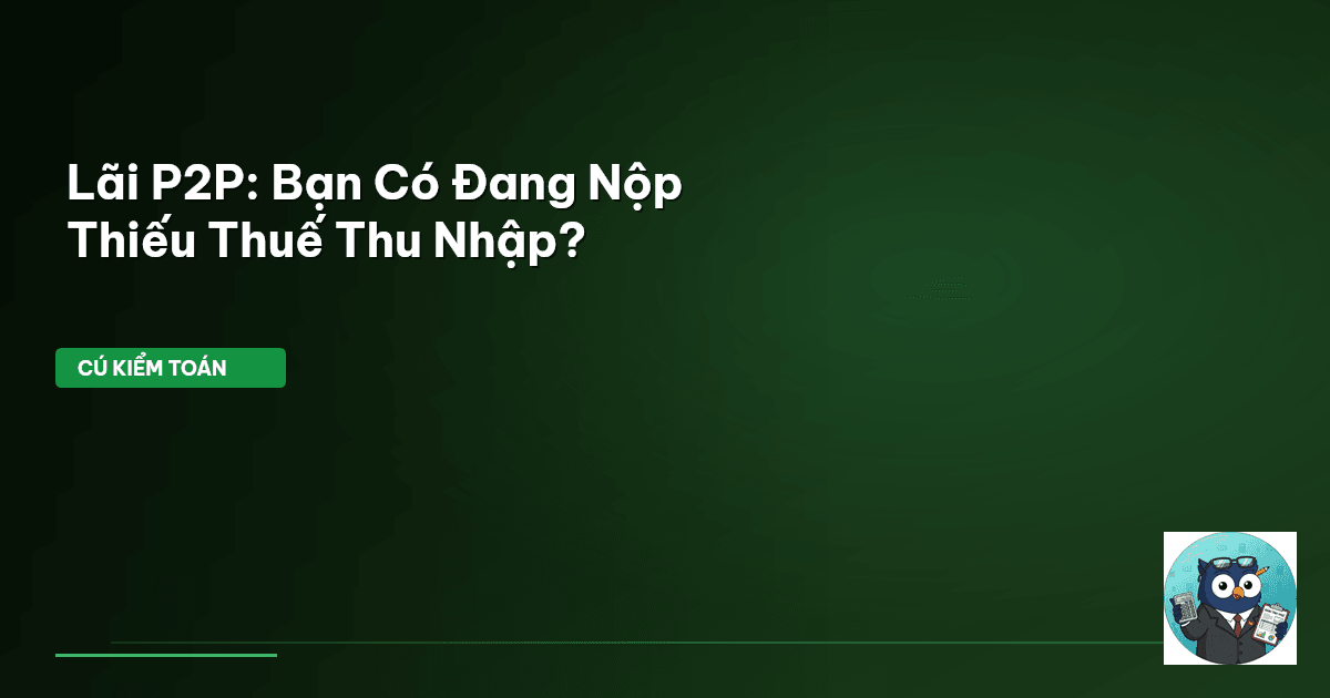 ⏱️ 9 phút đọc · 1800 từ Giới Thiệu: Lãi P2P – Lợi Nhuận Bất Ngờ Hay Gánh Nặng Thuế Tiềm Ẩn? Nền tảng cho vay ngang hàng (P2P lending) mở ra cơ hội sinh lời hấp dẫn, giúp nhiều cá nhân gia tăng thu nhập thụ động. Nhưng lợi nhuận đi kèm nghĩa vụ thuế , đây là điều không ít người bỏ qua. Cú Kiểm Toán nhận thấy, nhiều người cho vay P2P vẫn đang mơ hồ về việc kê khai và nộp thuế thu nhập cá nhân từ khoản lãi này. Cứ ngỡ chỉ cần nhận tiền lãi, không cần báo cáo. SAI LẦM NGHIÊM TRỌNG! Nếu không kê khai…