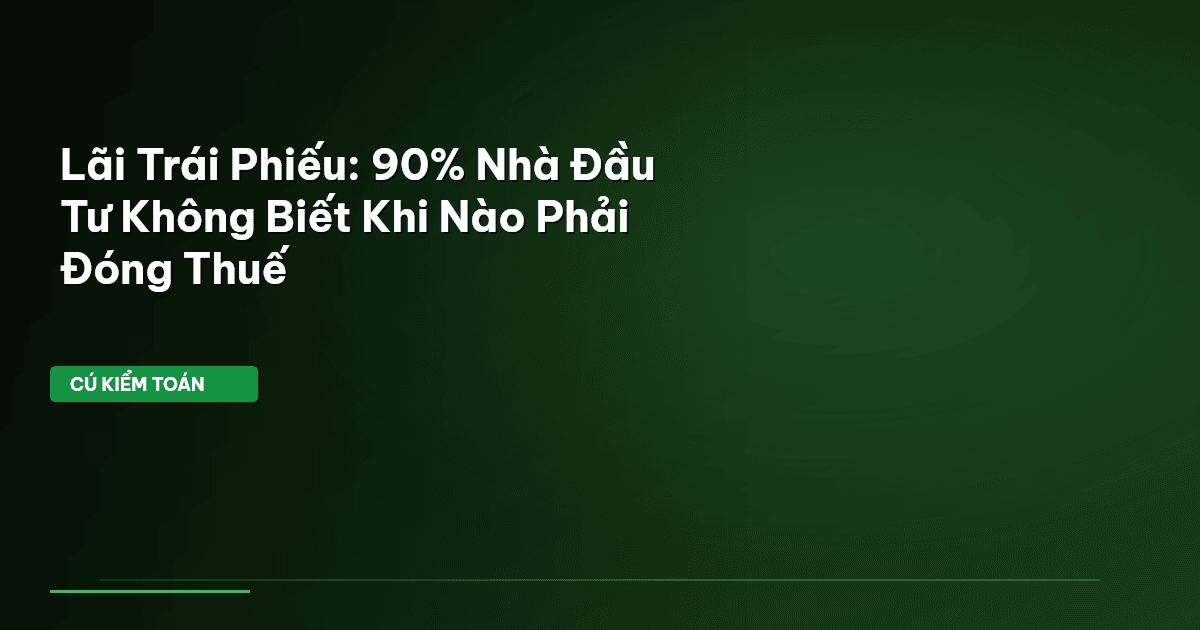 ⏱️ 9 phút đọc · 1730 từ Giới Thiệu: Lãi Trái Phiếu – Lợi Nhuận Tiềm Năng, Nghĩa Vụ Thuế Tiềm Ẩn Đầu tư trái phiếu là kênh sinh lời được nhiều người tin tưởng. Tuy nhiên, khi tiền về túi, rất nhiều nhà đầu tư lại "đứng hình" trước câu hỏi: Lãi trái phiếu có phải đóng thuế thu nhập cá nhân (TNCN) không? Phức tạp hơn, thông tin về ngưỡng "dưới 200 triệu đồng" càng làm mọi thứ rối như tơ vò. Cú Kiểm Toán thấy rõ nỗi đau này. Sự thật là, không phải mọi khoản lãi trái phiếu đều được đối xử như nhau dư…