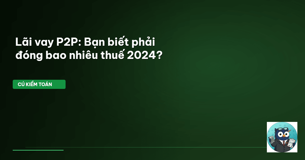 ⏱️ 9 phút đọc · 1769 từ Giới Thiệu: Lãi P2P — Tiền Về Túi, Thuế Đi Đâu? Thị trường cho vay ngang hàng (P2P lending) đang nóng. Nhiều cá nhân thấy cơ hội kiếm lời từ dòng tiền nhàn rỗi. Lãi suất hấp dẫn. Dòng tiền luân chuyển nhanh chóng. Nhưng Cú Kiểm Toán hỏi thật: bạn đã "soi kỹ" nghĩa vụ thuế với khoản lãi đó chưa? Hay chỉ tập trung vào con số lợi nhuận? P2P không còn là khái niệm xa lạ. Nó là kênh đầu tư, và mọi khoản thu nhập từ đầu tư đều nằm trong tầm ngắm của cơ quan thuế. Nhầm lẫn cách …