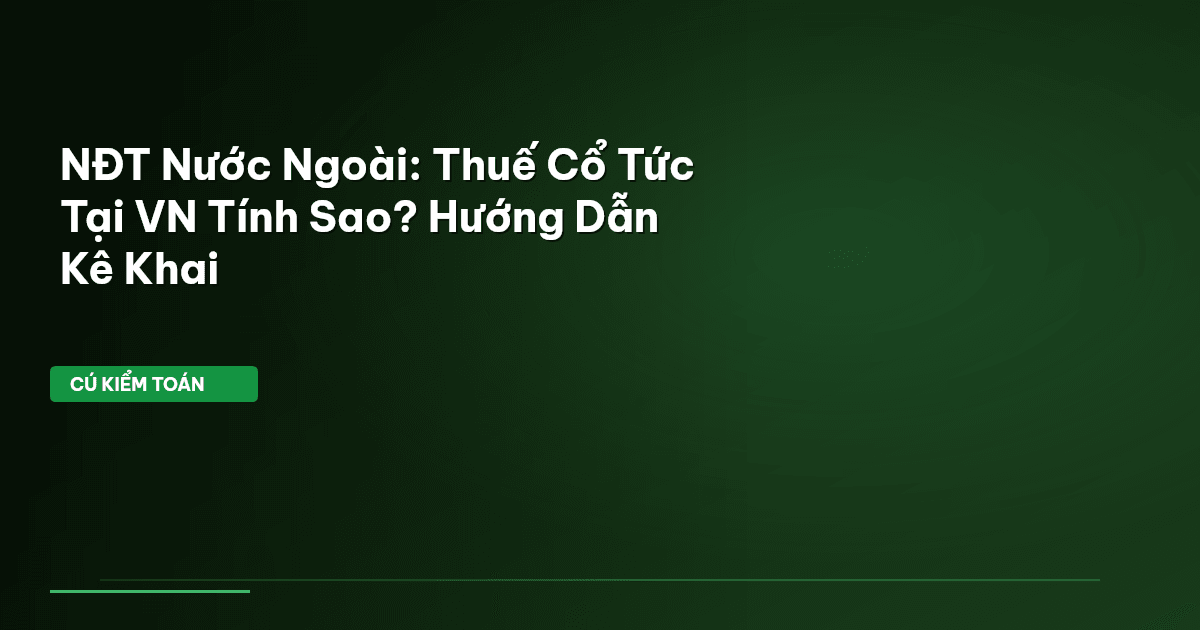 ⏱️ 12 phút đọc · 2306 từ Giới Thiệu: Thuế Cổ Tức Cho Nhà Đầu Tư Nước Ngoài – Rõ Ràng Từ Đầu Thị trường Việt Nam đang trở thành điểm đến hấp dẫn với dòng vốn đầu tư nước ngoài (FII). Tuy nhiên, khi lợi nhuận xuất hiện dưới dạng cổ tức, nhiều nhà đầu tư lại vướng mắc ở khâu thuế. Không ít cá nhân và tổ chức ngoại quốc cảm thấy bối rối về quy định, thủ tục. Cú Kiểm Toán ở đây để làm rõ mọi thứ. Bạn biết đấy, thuế cổ tức cho nhà đầu tư nước ngoài tại Việt Nam không phải là mê cung nếu nắm vững luật.…