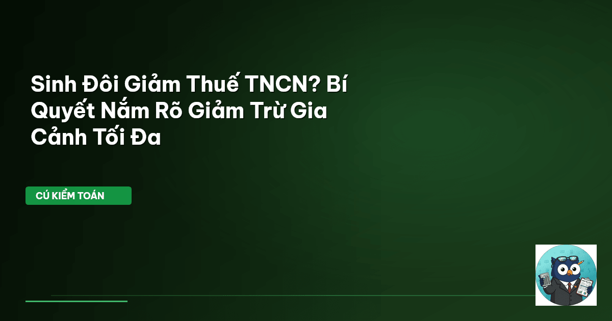 ⏱️ 9 phút đọc · 1678 từ Giới Thiệu: Sinh Đôi Đến, Thuế Giảm Sao Cho Chuẩn? Gần đây, Cú Kiểm Toán nghe nhiều người bàn về "Tín dụng Thuế Thu Nhập Kiếm Được (EITC)" cho gia đình có sinh đôi. Này, khoan đã! EITC là chính sách thuế của nước ngoài, cụ thể là Hoa Kỳ. Ở Việt Nam, chúng ta không có khoản tín dụng thuế y hệt như vậy. Nhưng đừng vội thất vọng. Tại Việt Nam, các gia đình có con nhỏ, đặc biệt là sinh đôi, vẫn có thể nhẹ gánh thuế Thu nhập cá nhân (TNCN) nhờ vào chính sách Giảm Trừ Gia Cảnh …