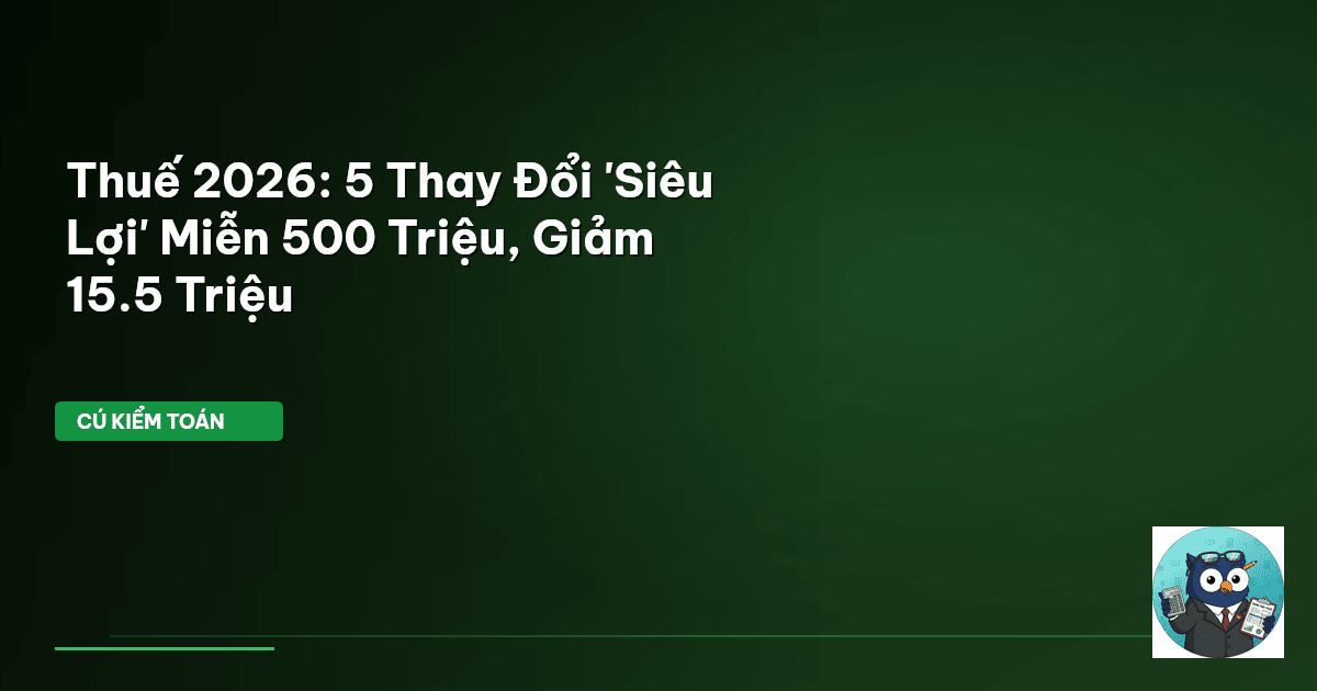 Năm 2026 không chỉ là một cột mốc thời gian, mà là một bước ngoặt lớn cho hệ thống thuế Việt Nam. Chính sách thuế mới 2026 không chỉ là những con số thay đổi. Đây là một cuộc cách mạng, một cơ hội để hàng triệu người nộp thuế, từ hộ kinh doanh nhỏ đến người lao động, tối ưu gánh nặng tài chính. Sự thay đổi này được thiết kế để phù hợp với mức sống hiện tại, đẩy mạnh chuyển đổi số, và kích thích tăng trưởng kinh tế. Cú Kiểm Toán đã soi kỹ từng điều khoản, và đây là những điểm 'siêu lợi' bạn không thể bỏ qua.