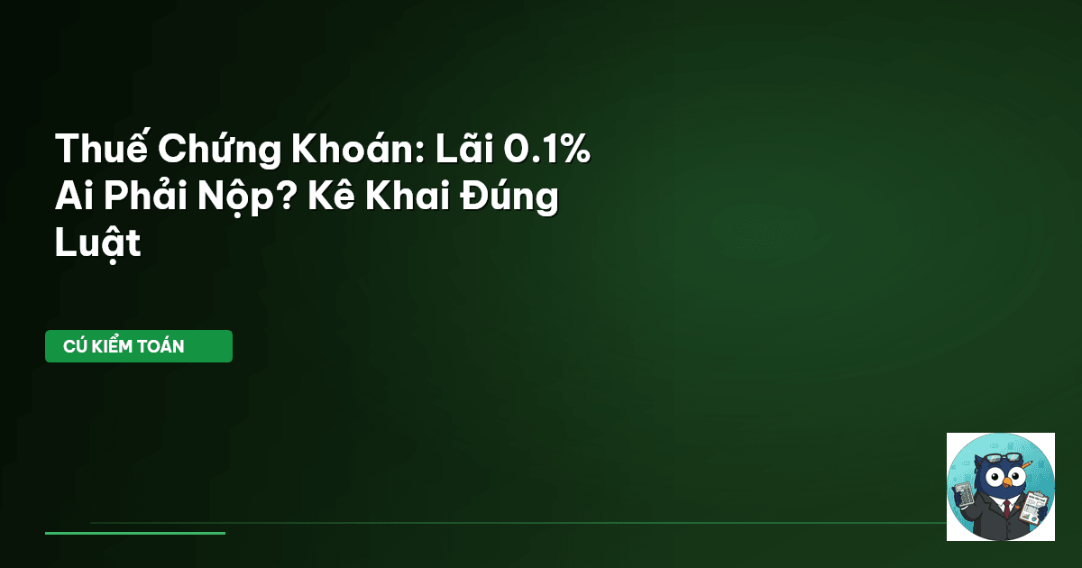 ⏱️ 10 phút đọc · 1843 từ Giới Thiệu: Thuế Chứng Khoán – Con Số Nhỏ, Rủi Ro Lớn? "Lãi chứng khoán có phải đóng thuế không?" – Đây là câu hỏi mà Cú Kiểm Toán nhận được thường xuyên từ các nhà đầu tư. Ai cũng muốn tối đa hóa lợi nhuận, nhưng quên mất nghĩa vụ thuế có thể khiến lợi nhuận đó bốc hơi nhanh chóng. Nhiều người lầm tưởng đầu tư chứng khoán không phải chịu thuế, hoặc chỉ khi có lãi mới đóng. Sai lầm! Thực tế, thuế thu nhập cá nhân (TNCN) từ chuyển nhượng chứng khoán tại Việt Nam có một cơ…