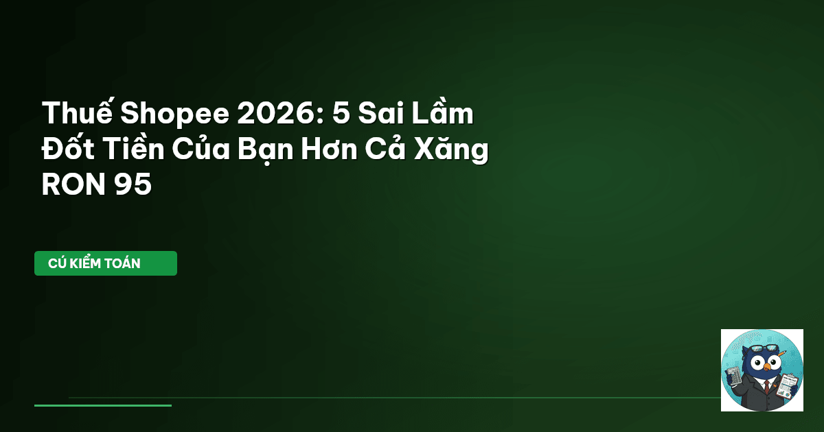 ⏱️ 15 phút đọc · 2920 từ Giới Thiệu: Đừng Để Thuế Shopee 2026 'Đốt Tiền' Của Bạn Hơn Cả Xăng RON 95 Chào bạn, Cú Kiểm Toán đây. Có một sự thật phũ phàng mà nhiều người kinh doanh online trên Shopee vẫn đang lầm tưởng: thuế là chuyện của người khác. Hoặc nghĩ rằng việc kê khai chỉ là hình thức, dễ dàng bỏ qua. Đến năm 2026, quan điểm đó sẽ khiến bạn phải trả một cái giá đắt hơn cả việc mua xăng tại một trong những nơi xa xỉ nhất khu vực. Theo dữ liệu thực tế từ hệ thống Cú Thông Thái (nguồn: pvoi…