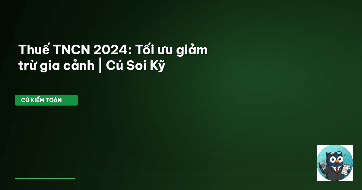 ⏱️ 11 phút đọc · 2072 từ Giới Thiệu: Thuế TNCN 2024 Có Gì Mới? Cú Kiểm Toán Lên Tiếng Mỗi năm, câu chuyện Thuế Thu nhập cá nhân (TNCN) lại khiến không ít người đau đầu. Lương bao nhiêu thì phải đóng thuế? Giảm trừ gia cảnh tính thế nào? Có cách nào để "tối ưu" mà vẫn hợp pháp không? Những câu hỏi này không hề cũ. Với năm 2024, các quy định cơ bản về TNCN vẫn giữ nguyên như từ năm 2020, nhưng sự hiểu biết và áp dụng đúng mới là chìa khóa. Cú Kiểm Toán ở đây không chỉ để soi từng con số, mà còn để…
