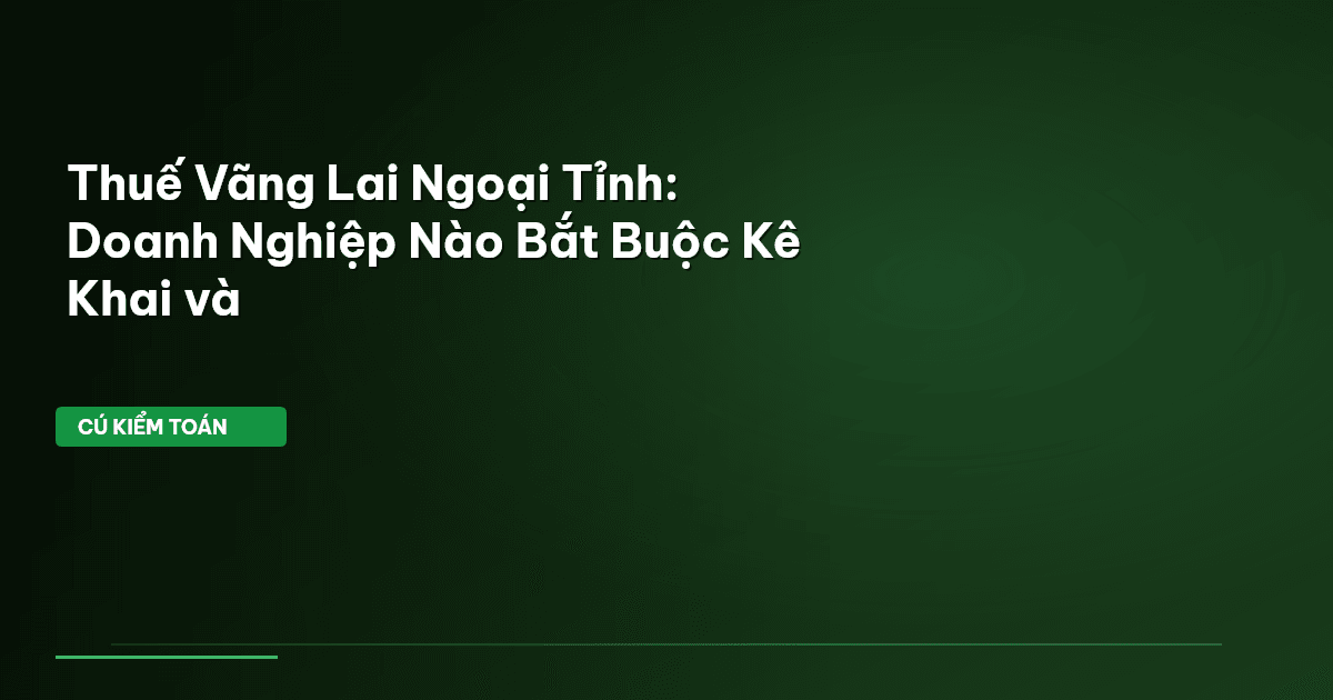 ⏱️ 10 phút đọc · 1957 từ Giới Thiệu: Đừng Để Thuế Vãng Lai Trở Thành Nỗi Ám Ảnh Ngoại Tỉnh Trong kinh doanh, không ít doanh nghiệp hoặc cá nhân hoạt động ở nhiều tỉnh, thành phố khác nhau. Lúc này, một khái niệm thường xuyên xuất hiện là "thuế vãng lai ngoại tỉnh" . Nhiều người vẫn còn mơ hồ về nó, dẫn đến việc kê khai sai, nộp chậm hoặc thậm chí không nộp, và rồi đối mặt với những khoản phạt không hề nhỏ. Theo Cú Kiểm Toán, đây là một trong những điểm nóng mà doanh nghiệp nhỏ và vừa thường xuyê…