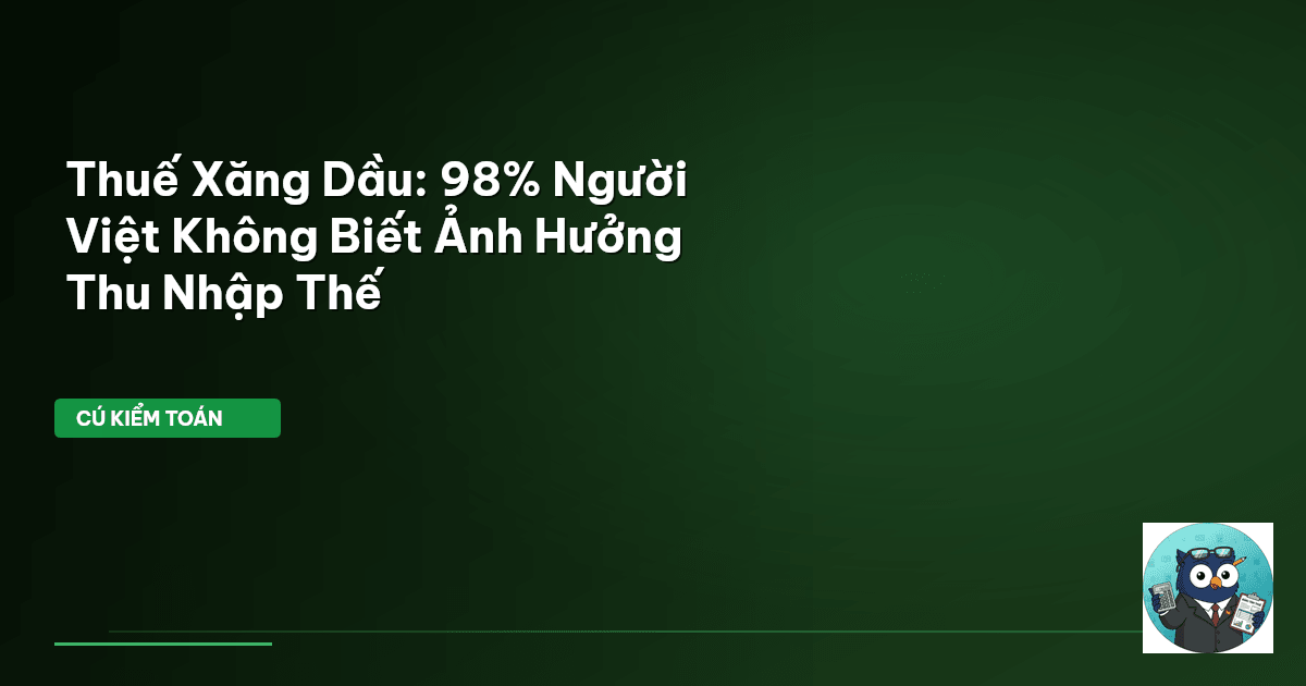 ⏱️ 9 phút đọc · 1618 từ Giới Thiệu: Khi Giá Xăng Chạm Tới Ví Tiền, Thuế Của Bạn Biến Động Ra Sao? Chào bạn, Cú Kiểm Toán đây. Hôm nay, chúng ta không nói chuyện cổ phiếu, cũng không phải tỷ giá, mà là thứ bạn đổ vào xe mỗi ngày: xăng. Chi phí xăng dầu tăng cao không chỉ khiến ví bạn mỏng hơn mà còn có tác động sâu rộng, khó lường đến nghĩa vụ thuế của cả cá nhân và doanh nghiệp. Số liệu Cú Kiểm Toán thu thập ngày 15/04/2026 cho thấy, giá xăng RON 95 tại Việt Nam đang ở mức 23.760 VND/lít . So vớ…