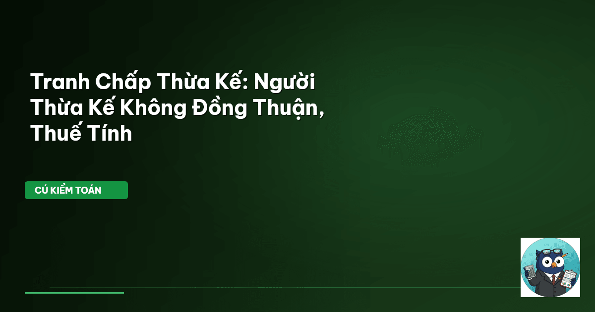 ⏱️ 11 phút đọc · 2131 từ Giới Thiệu: Khi Người Thừa Kế Không Đồng Thuận, Thuế Vẫn Chờ Thừa kế là một vấn đề nhạy cảm, dễ phát sinh tranh chấp. Đặc biệt khi tài sản có giá trị lớn hoặc liên quan đến nhiều người, việc người thừa kế không đồng thuận chia tài sản là kịch bản không hề hiếm. Lúc này, không chỉ là câu chuyện tình cảm gia đình, mà còn là các vấn đề pháp lý phức tạp và nghĩa vụ thuế cần phải giải quyết. Cú Kiểm Toán nhấn mạnh: Mọi tài sản có giá trị đều đi kèm nghĩa vụ thuế. Bỏ qua tranh…