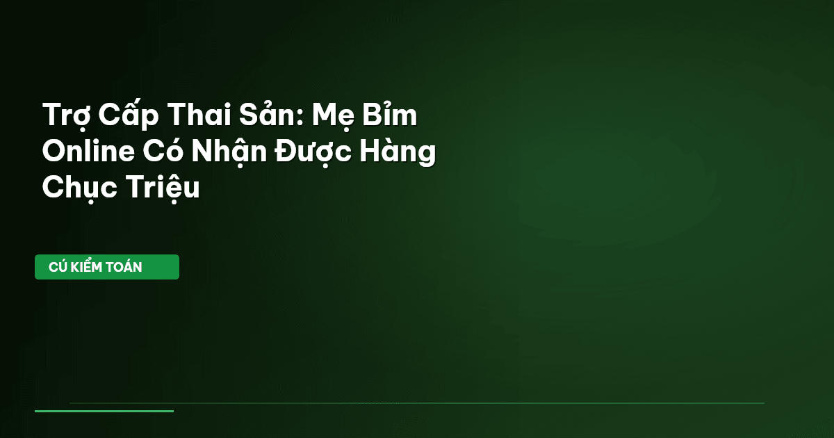 Em tự hỏi: "Mình bán online, không có hợp đồng lao động, không đóng Bảo hiểm xã hội (BHXH) bắt buộc hàng tháng thì có được nhận trợ cấp thai sản không?" Câu trả lời của Cú Kiểm Toán là: Có thể, nếu em biết cách! Nhiều mẹ bỉm vẫn đang bỏ lỡ hàng chục triệu đồng tiền trợ cấp chỉ vì chưa nắm rõ quy định. Đừng để lỡ quyền lợi chính đáng của mình, em nhé. Cùng Cú Kiểm Toán tìm hiểu ngay.