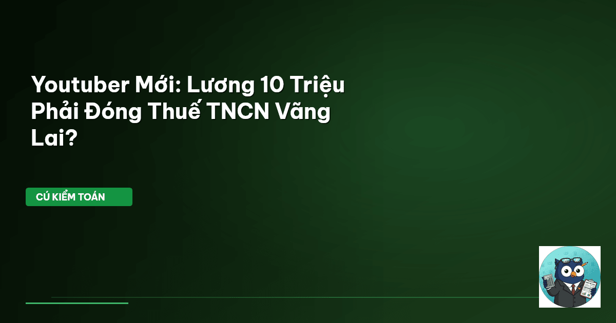 Hôm nay, Cú Kiểm Toán sẽ "soi kỹ từng con số", phân tích rõ ràng về thuế TNCN vãng lai áp dụng cho Youtuber mới theo các quy định hiện hành. Chúng ta sẽ cùng tìm hiểu xem, với thu nhập từ 10 triệu đồng/tháng, liệu bạn đã thuộc diện phải nộp thuế hay chưa. Mọi thứ sẽ được đơn giản hóa để bạn dễ dàng nắm bắt.